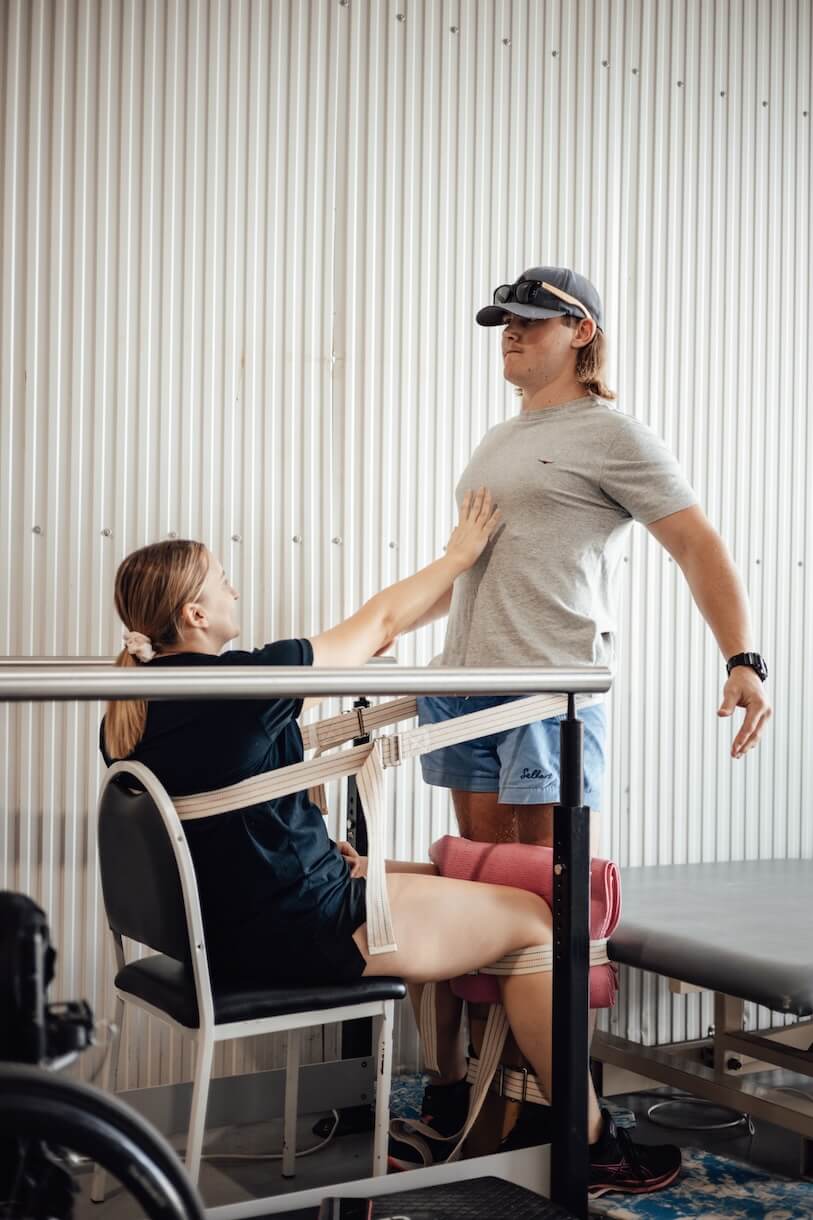 Despite not having a favourite exercise, she finds joy in stretching her legs and using the easy stand. Nicole holds our clinicians, Emma, Bec O, and the adorable Barry the dog, close to her heart.