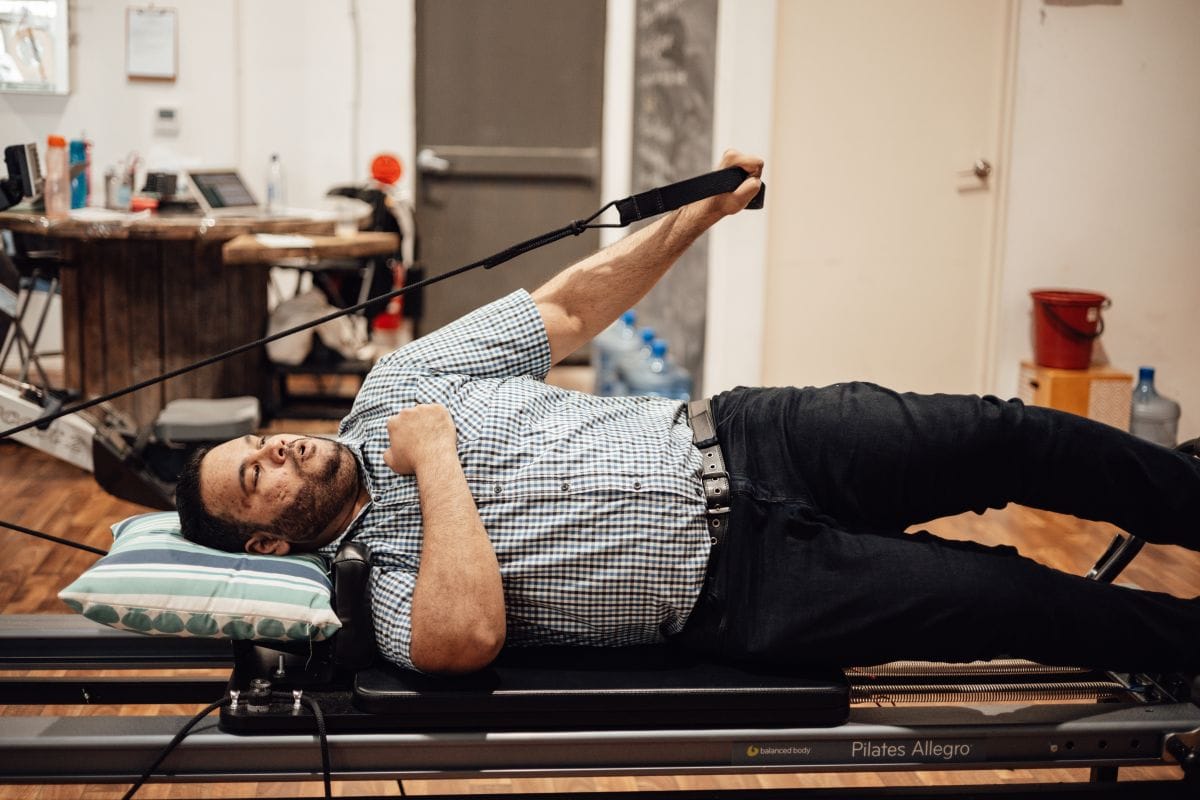Although he humorously considers coffee his favourite exercise, he appreciates the guiding hand of Nic, the boss clinician.