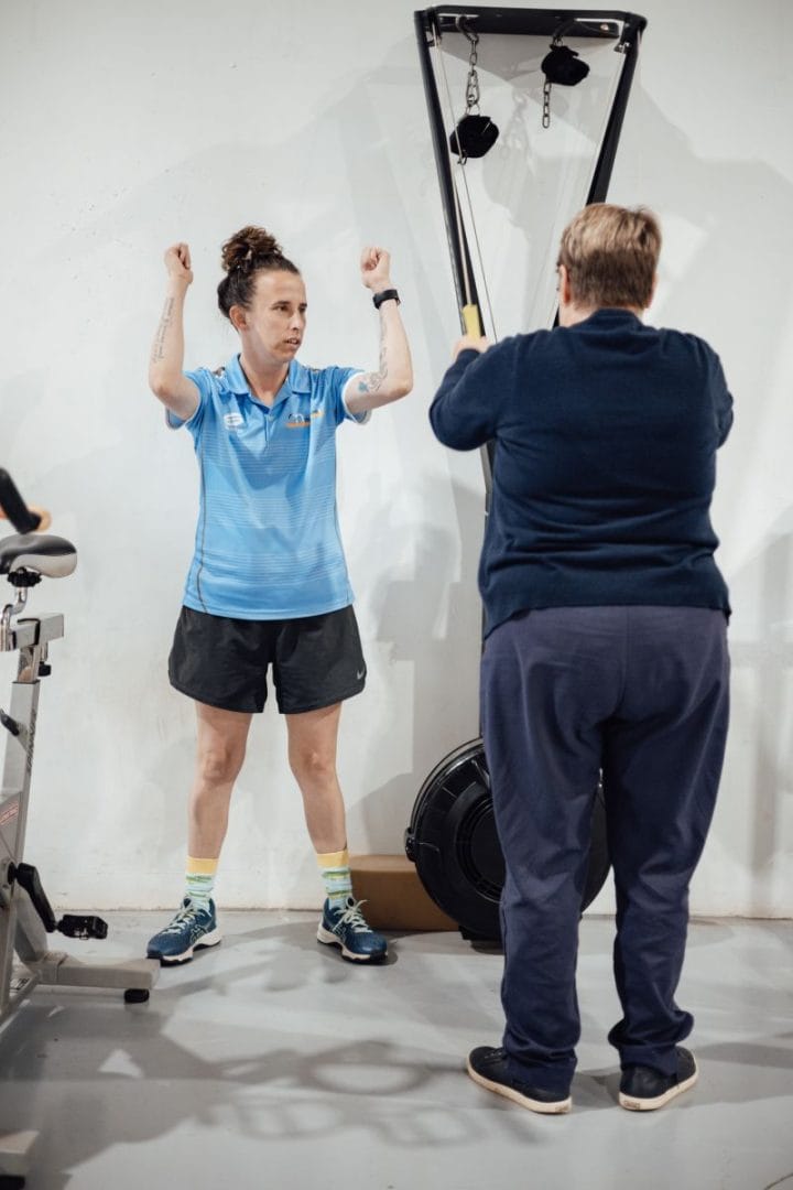 Dealing with Multiple Sclerosis, Nicole joined OTM to maintain her standing transfer and upper body strength.